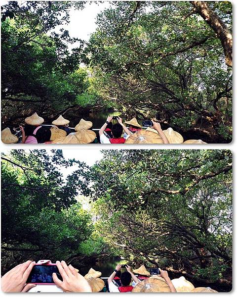 搭著竹筏由綠色隧道,其實滿不錯滴,可惜我們沒有搶到好的位置...