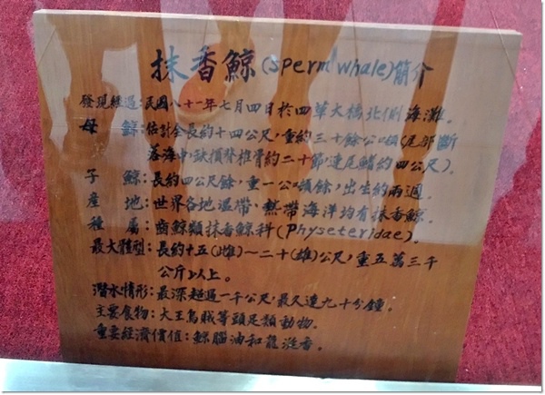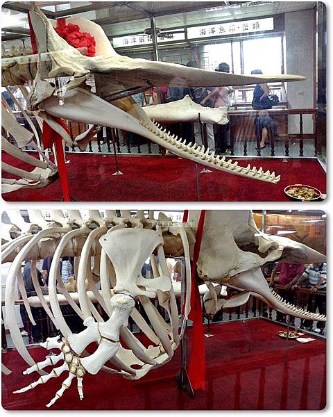 裡面放著真實的抹香鯨標本,是之前擱淺的抹香鯨留下來的真實骨格標本喔