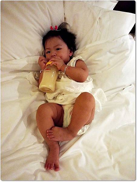 這時也到了妞妞喝奶奶的時間了,妞妞一邊喝姐姐還幫她拍照咧