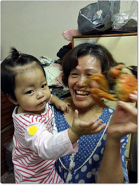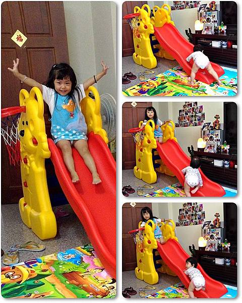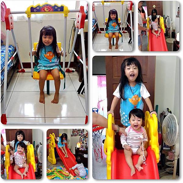 回彰化家,姐姐把所有的大型玩具都搬出來玩,奶奶就把妞妞抱去一起湊熱鬧