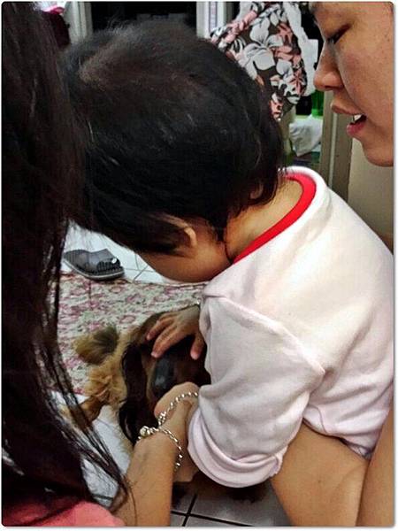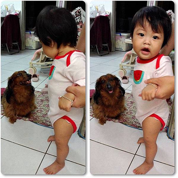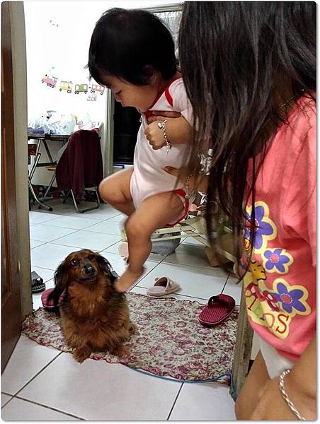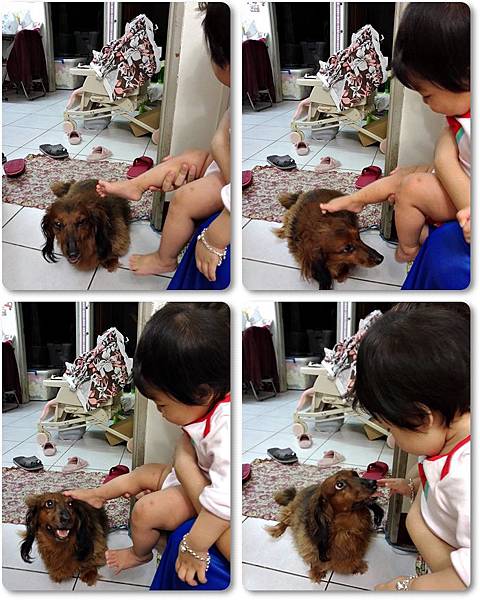 妞會很想要去接觸牠,但當狗狗接近她時...她又會非常緊張甚至尖叫
