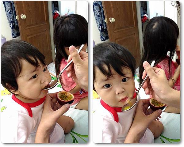 妞也挺耐酸滴,百香果麻咪還有姐姐在吃,她也在一旁吵著要
