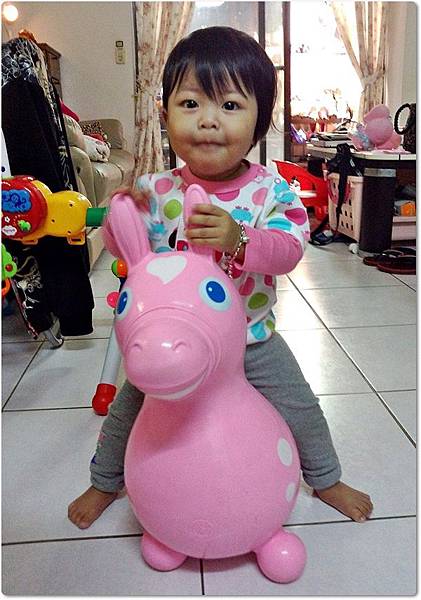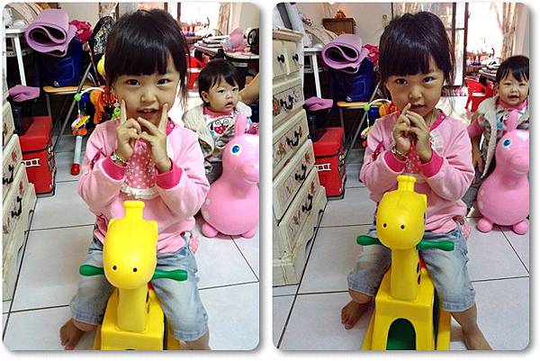 今天在家跟姐姐一起玩坐騎,妞的平衡感還不錯,滿穩滴