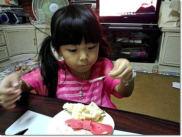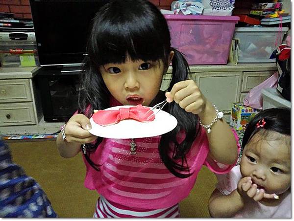 像這次姐姐的生日蛋糕,就被她自己偷抓了一把去吃
