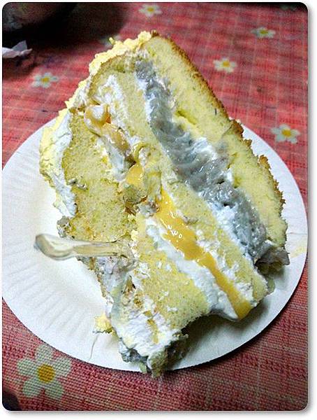 蛋糕內餡,我們挑了芋泥布丁口味,滿好吃的說