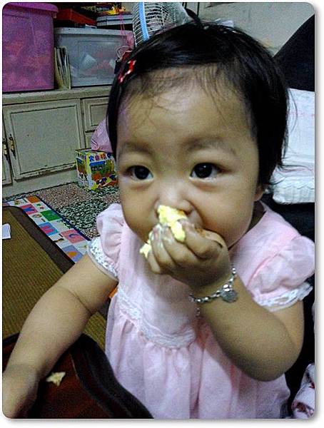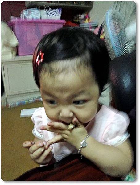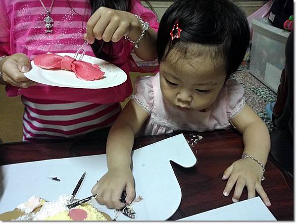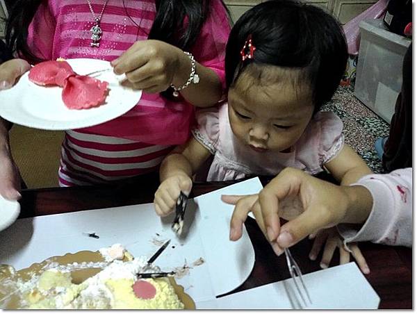 開始吃蛋糕後她也不寂寞,硬是要吃...