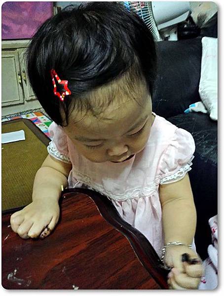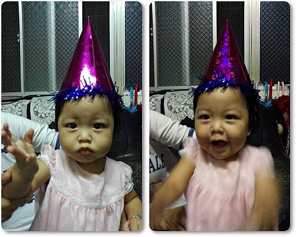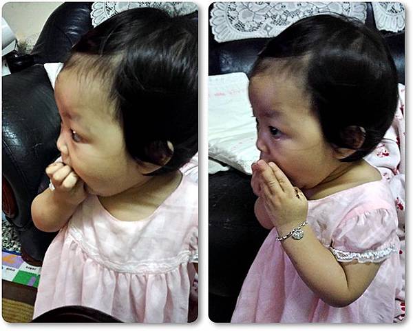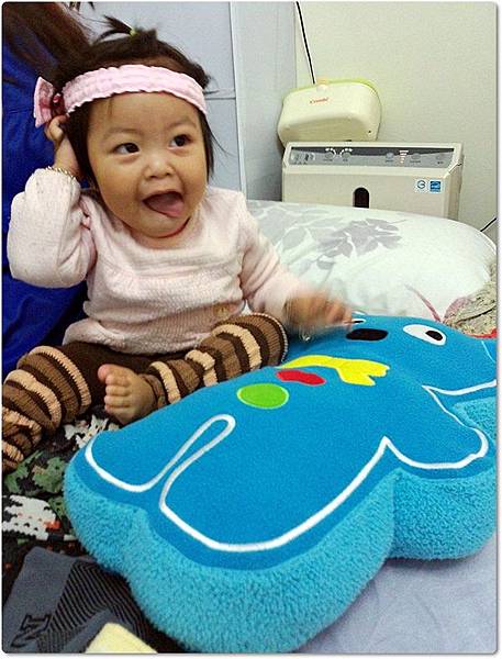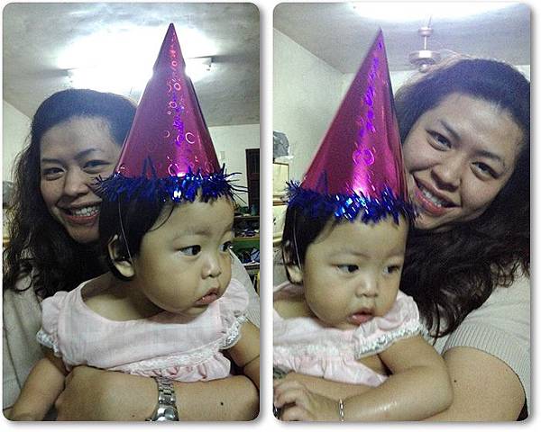這張是姐姐拍滴,妞妞戴髮帶,表情好Q