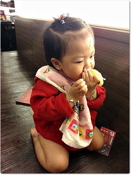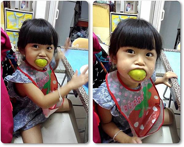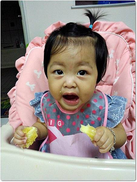 回家後,晚餐吃飽後,水果是柳丁,妞看我們吃就一直吵著也要吃