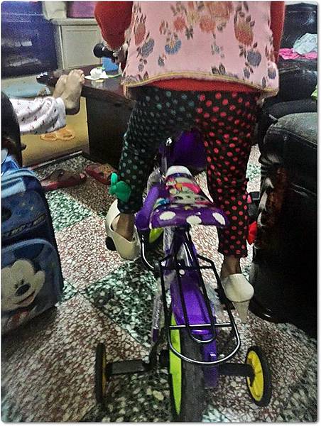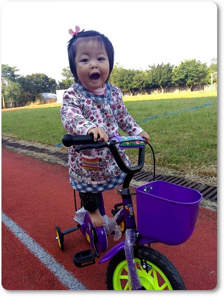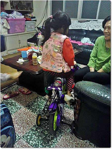 那天下班回家姐姐就很高興的跟我說她會騎了,且騎很快然後去撞妞妞的推車喔