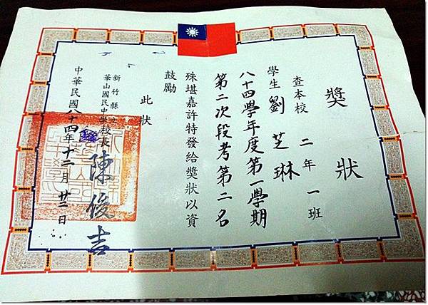 再次插播,今天下班回家意外發現桌上有一張麻咪國中時候的獎狀(背面被姐姐拿來畫圖了)