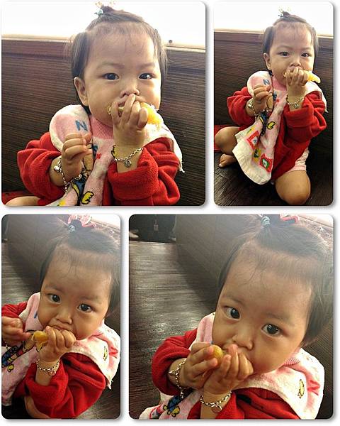 過程我們很緊張,還好妞妞也不笨,懂得抓緊姐姐