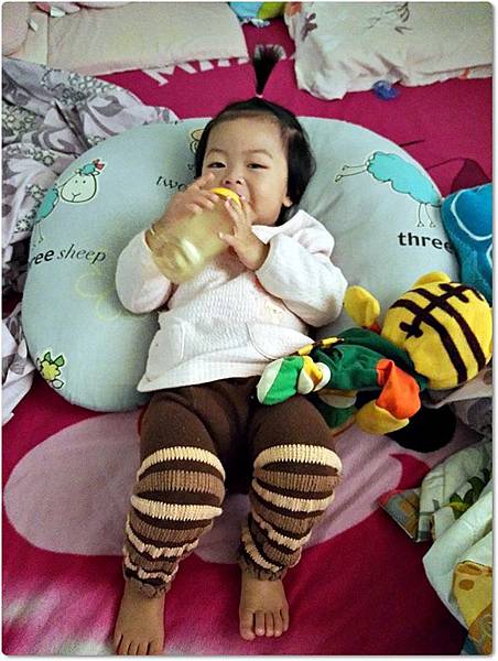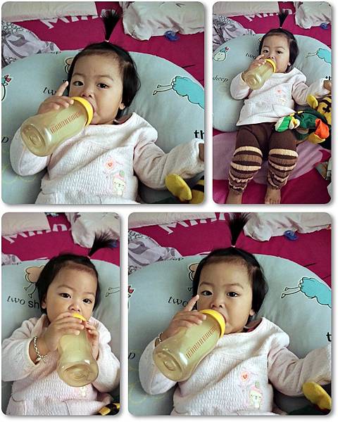 這樣她在一旁喝奶,我們就可以忙自己的事,整裝準備上班