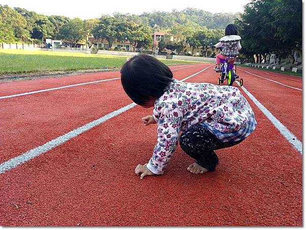 姐姐很厲害,自己這樣慢慢的騎呀騎,也騎了2圈耶