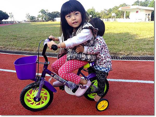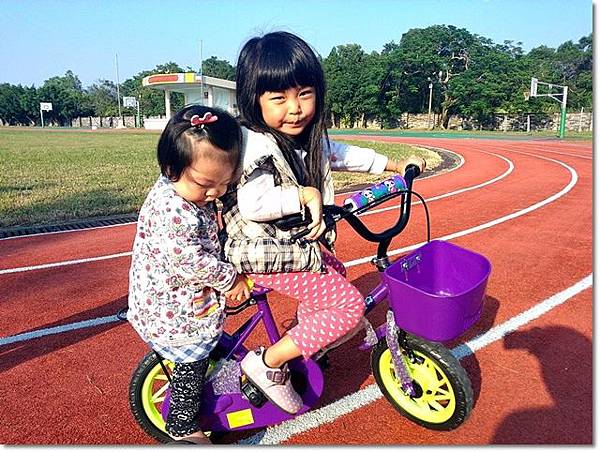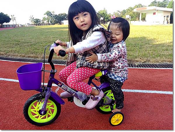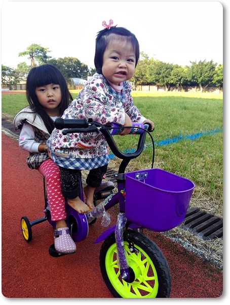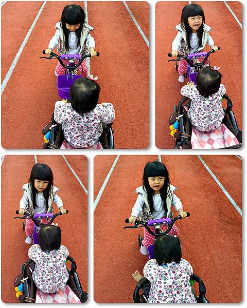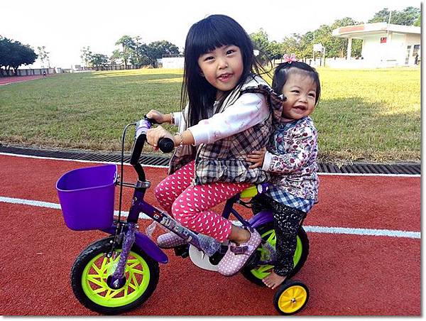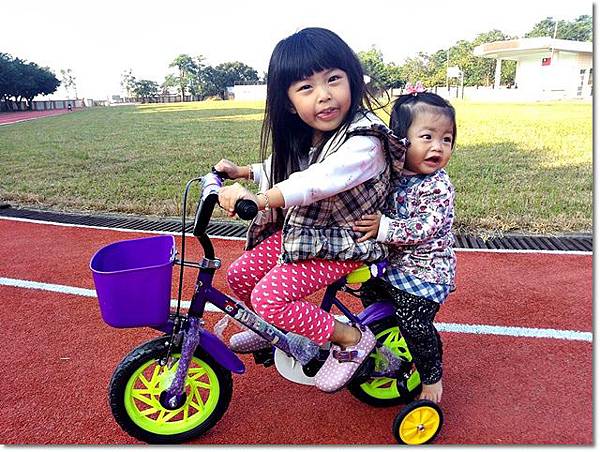 教到姐姐都跟坐在推車上的妞妞說...妞妞我不會騎,妳來騎然後載我好嘛