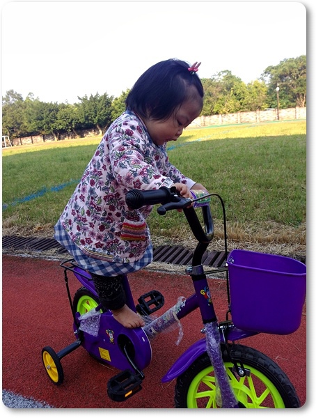 妞妞一直很想要玩姐姐的腳踏車,所以跟姐姐講一下,讓妹妹玩看看