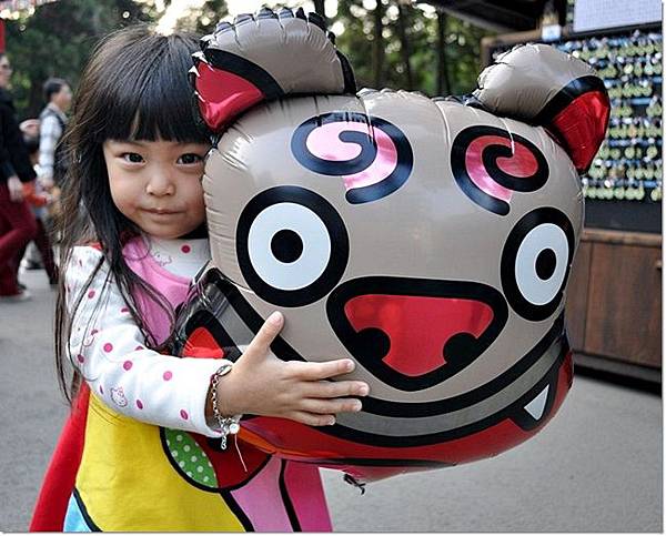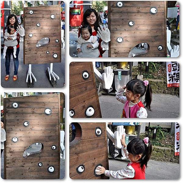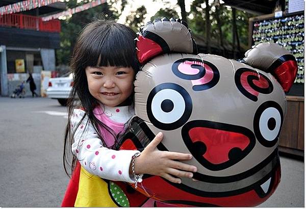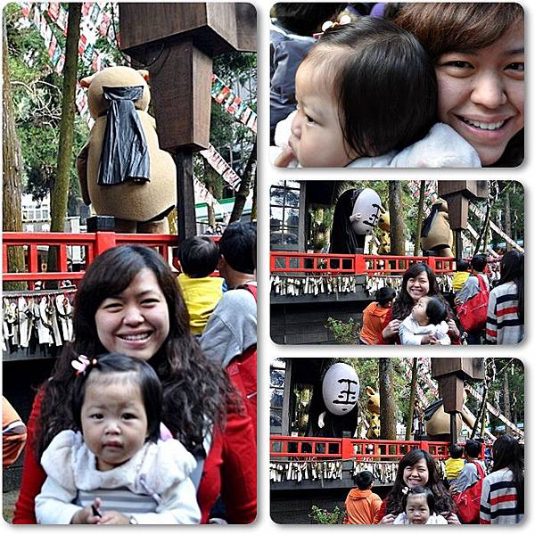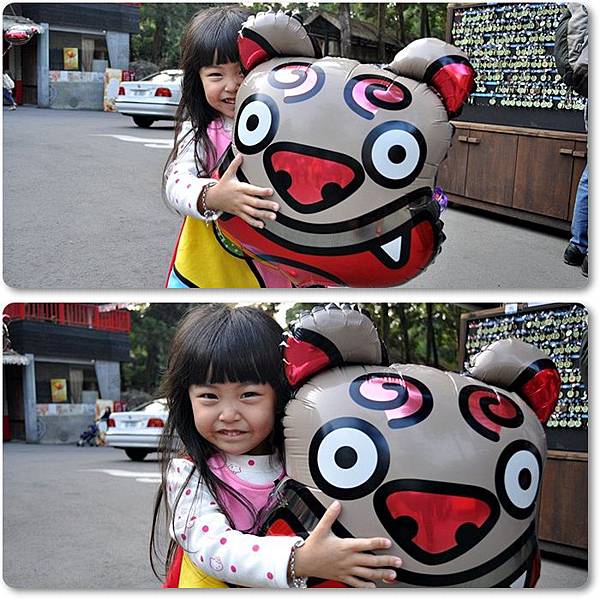 妞妞也對這大型人偶很有興趣,眼睛不時的盯著他們瞧