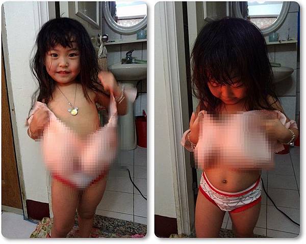 下午回到新竹,洗完澡姐姐竟然說她也要穿"內衣"