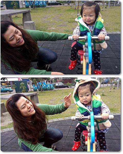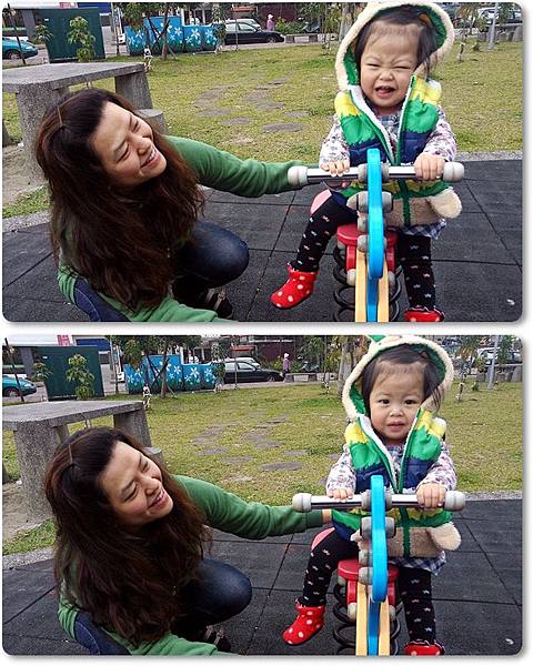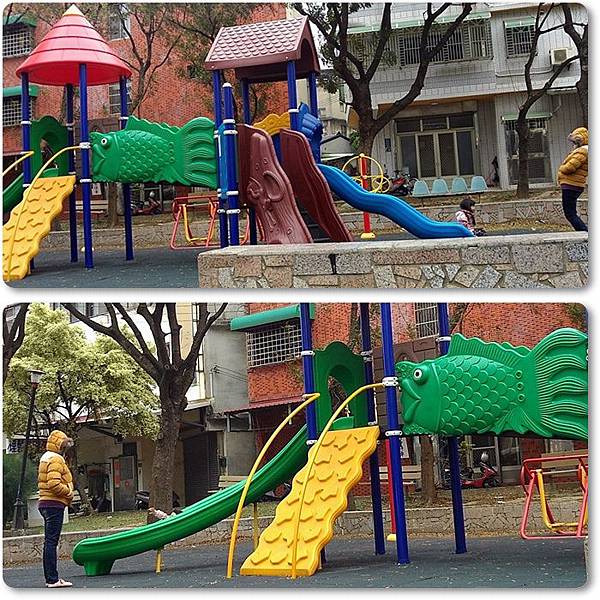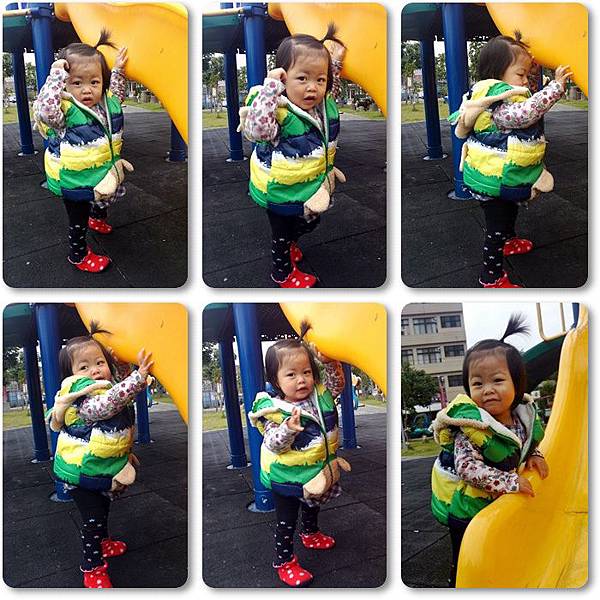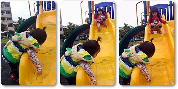 天氣很冷...麻咪包緊緊在戶外陪姐姐玩溜滑梯,真是母愛呀