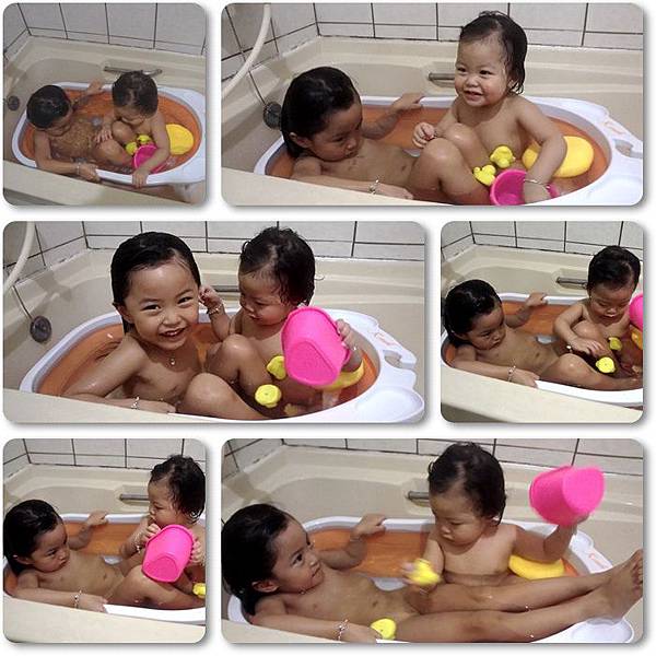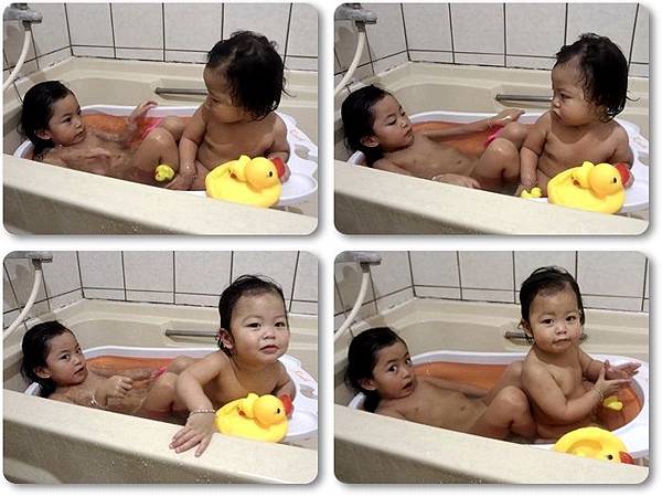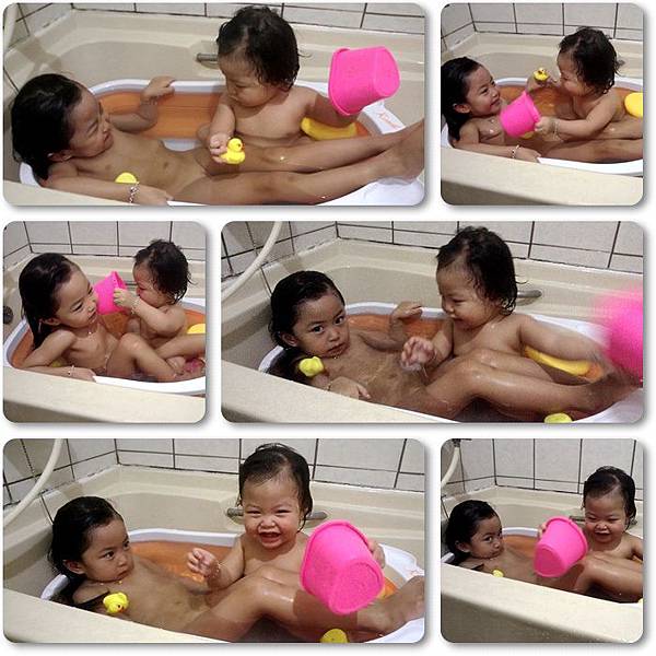 兩人互動很算不錯,也玩的起來,可以澡盆小了點,他們兩個在裡面真的是有點擠了