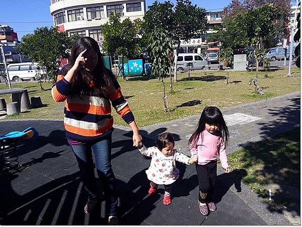 睡醒後一樣是帶她們姐妹倆去公園玩,只不過這次有跑遠一點的公園