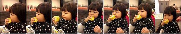 今天中午去竹北吃極鮮火鍋,妞妞從開始就一直啃著不同的東西
