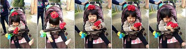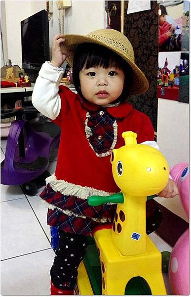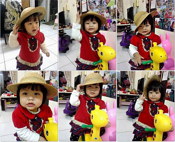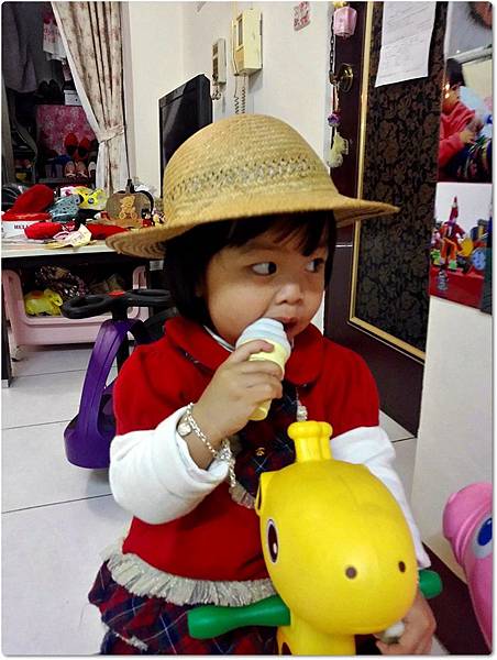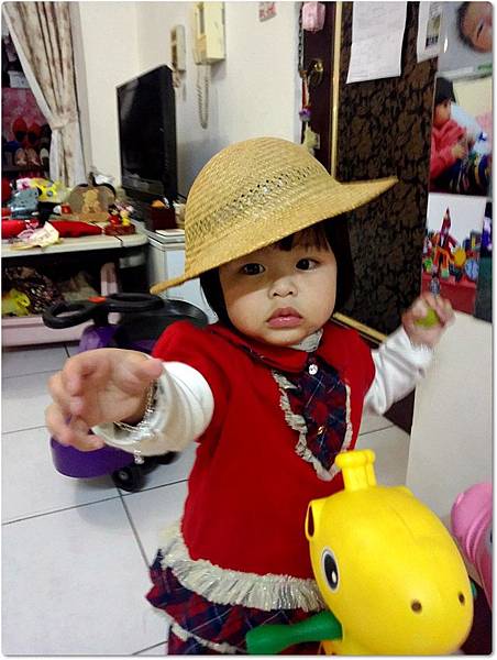 姐姐幫妞妞戴草帽,妞妞戴起來超~~~~可愛的啦