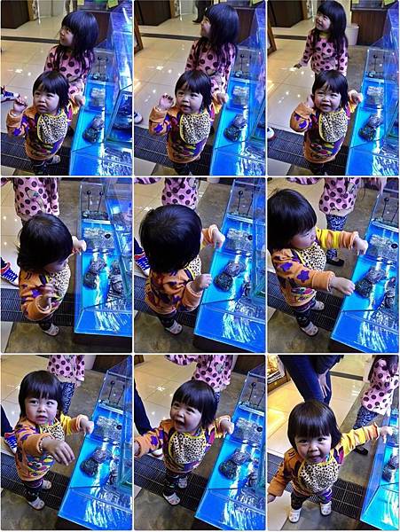 妞妞看到水族館裡的烏龜很興奮,一度伸手想要去抓