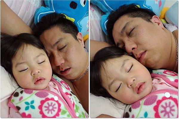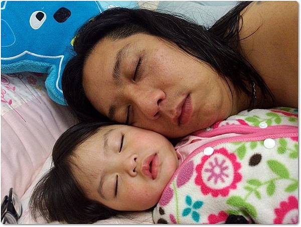 妞妞睡著了我看她可愛硬是要去跟她擠一下,還叫麻咪快點幫我拍幾張