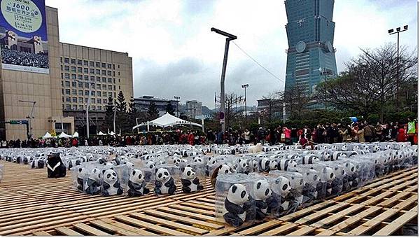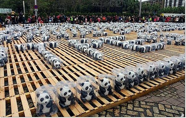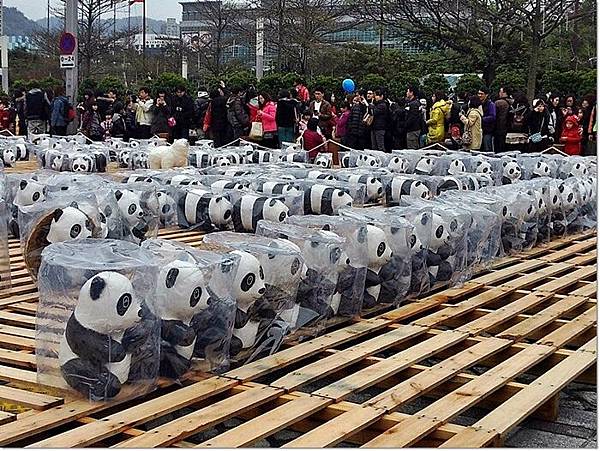 這裡就是裡面擺放1600隻貓熊的廣場...