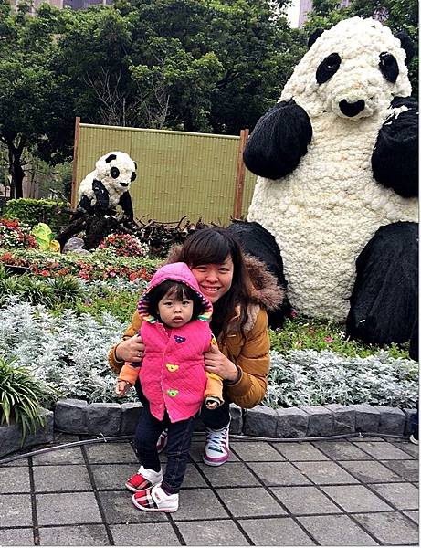 拍完麻咪看我還在排隊,就帶妞妞也一起去跟這些漂亮的大貓熊拍照