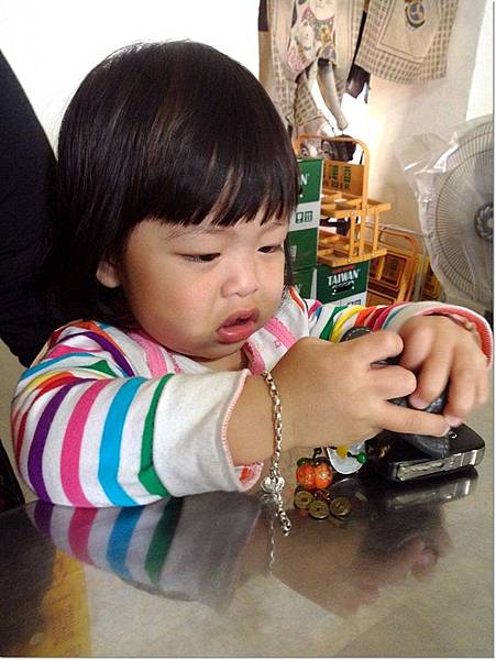 妞妞因為累了加上有點肚子餓,所以有點燥動,只好拿出我們的車鑰匙供她玩樂安撫一下