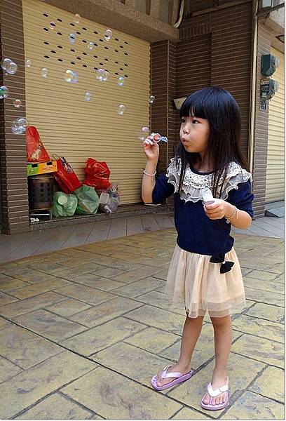 妞妞就在一旁忙著抓泡泡◕‿◕