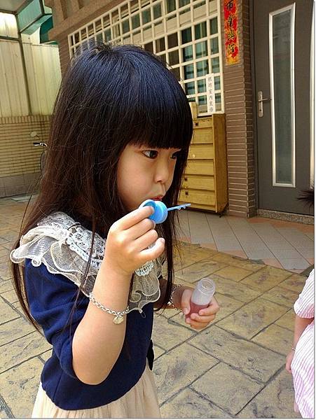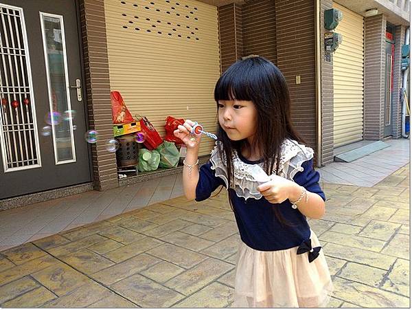一早起來,紜姐姐吃完早餐後說想要出去玩吹泡泡