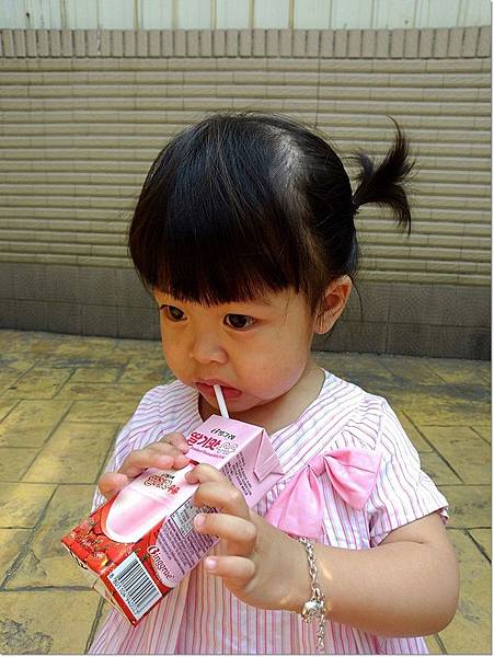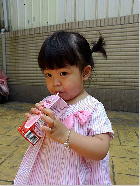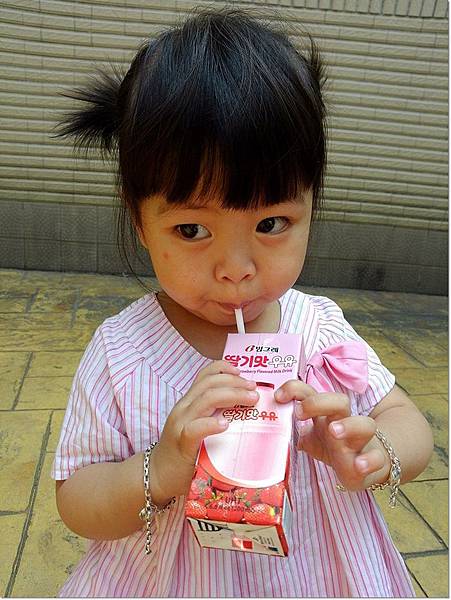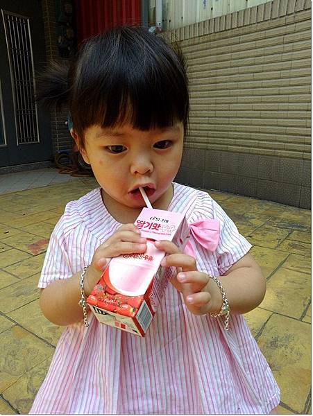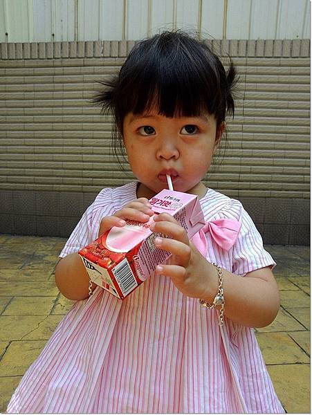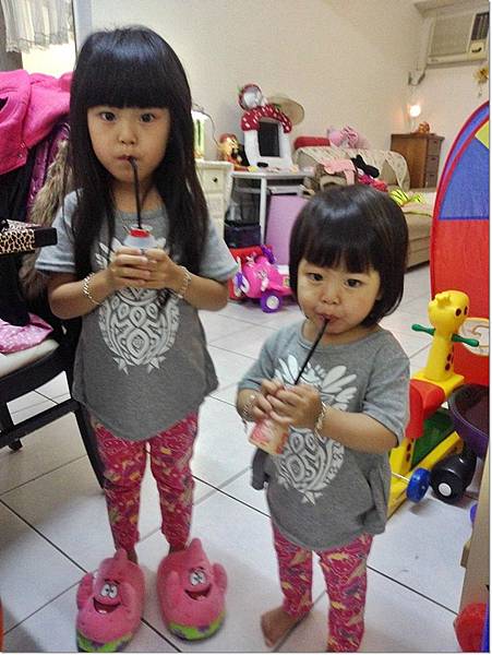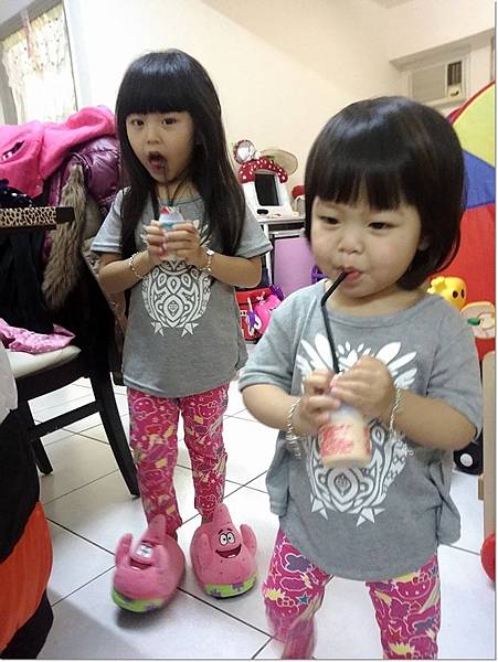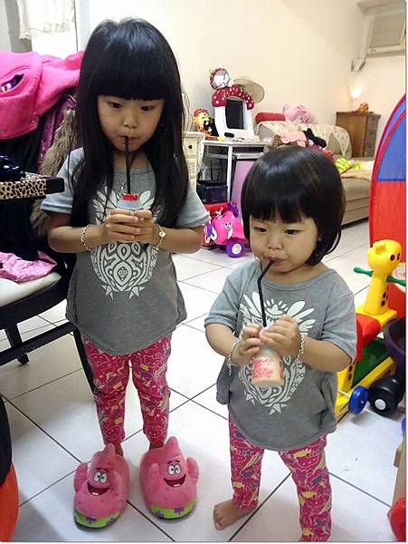這草莓牛奶...是奶奶昨天去costco特別買給她們姐妹倆喝滴