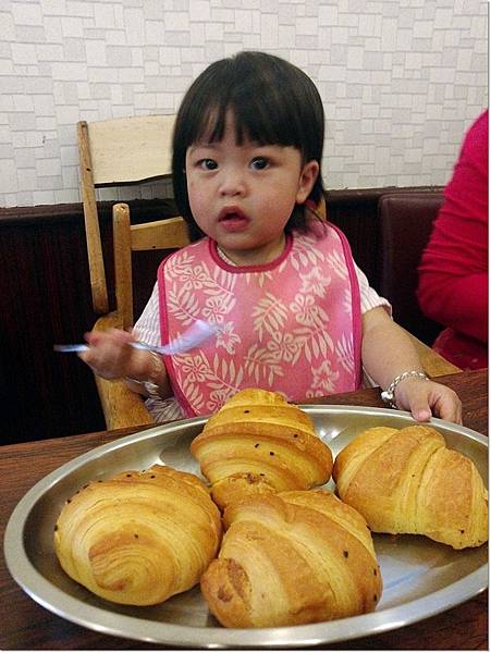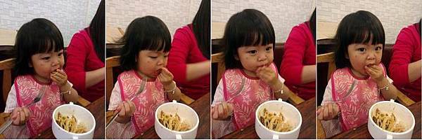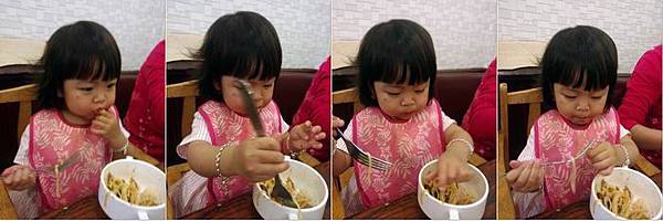 妞妞不知不覺餐具用的有點上手了...(真的只是有點喔)