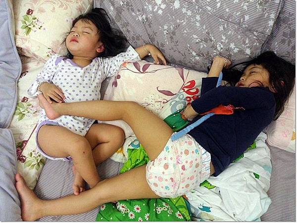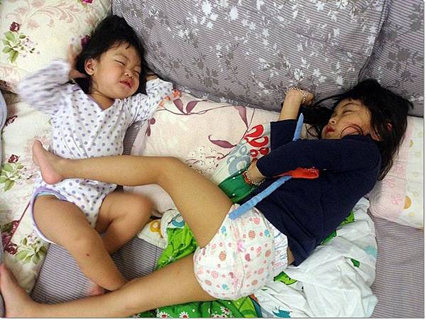 有時真的很怕紜姐姐會打傷妞妞,因為她們倆睡的很近