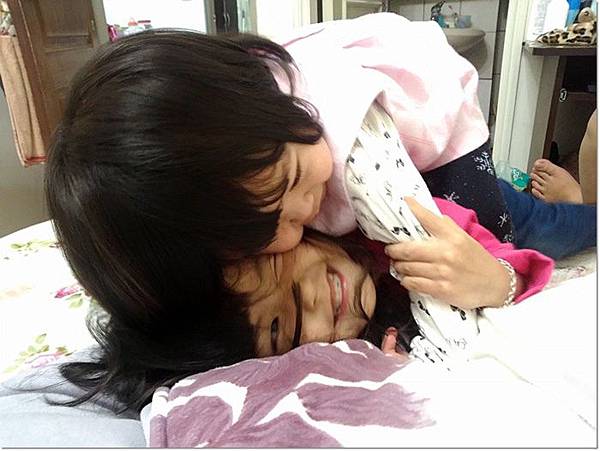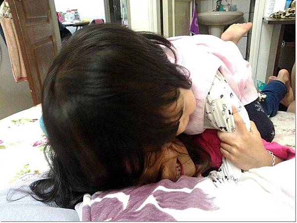 狀況是...妞妞壓著姐姐,在跟姐姐"玩" Ψ( ̄▽ ̄)-c<” ̄⊿ ̄)/