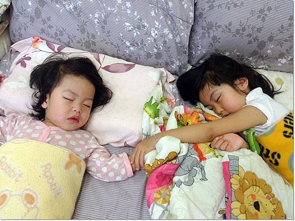 晚上睡覺時,我有拍她們姐妹倆睡覺時的樣子...