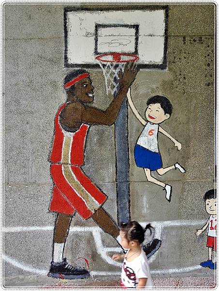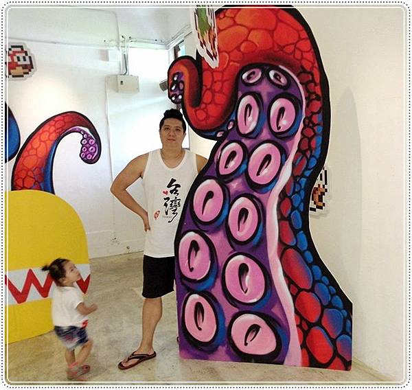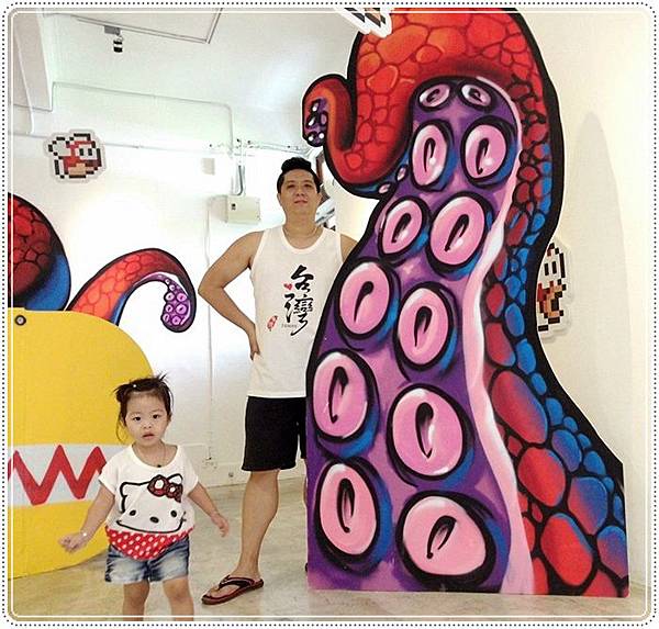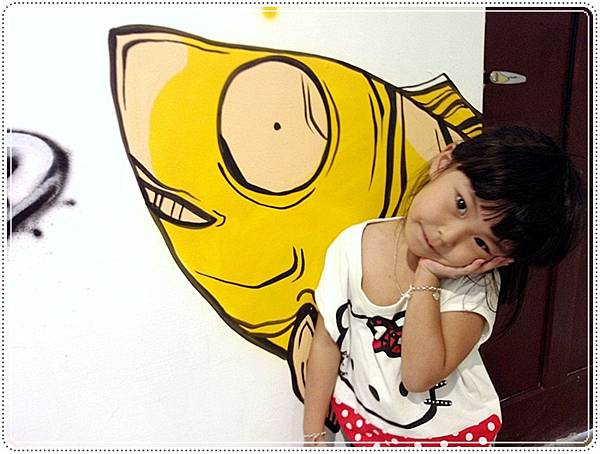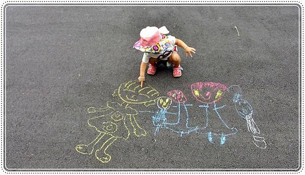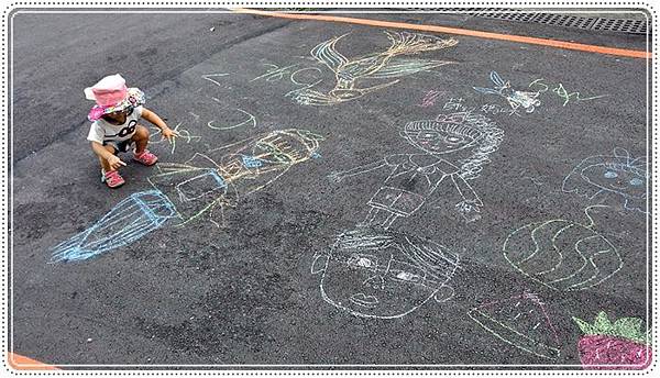 一進去特區內就看到地上有著這用粉筆畫的塗鴉,妞妞也很好奇的咧(=^_^=)