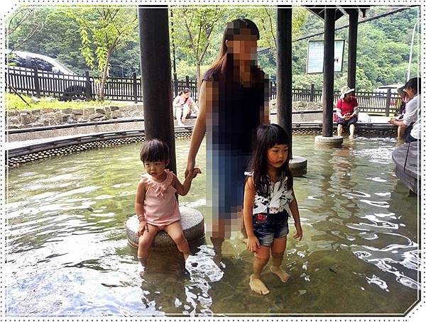 然後,我們來到了溫泉區瞧瞧,順便帶她們姐妹倆下去泡泡腳