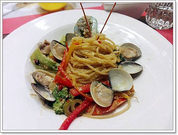 我點的是辣味奶油海鮮義大利麵(白醬)