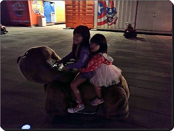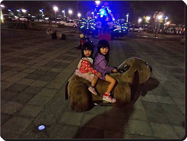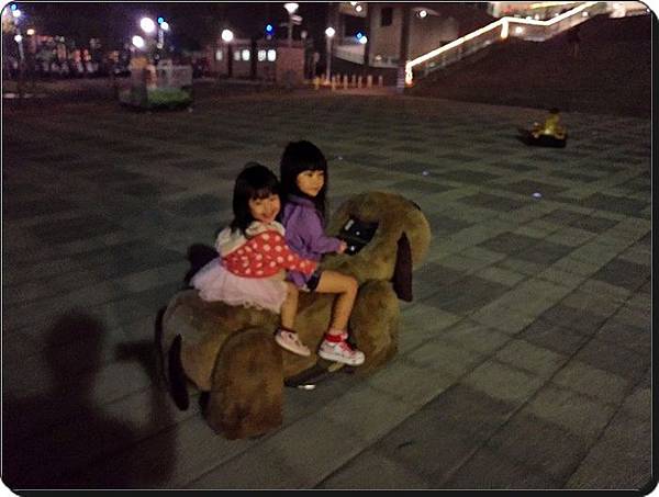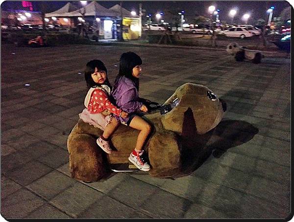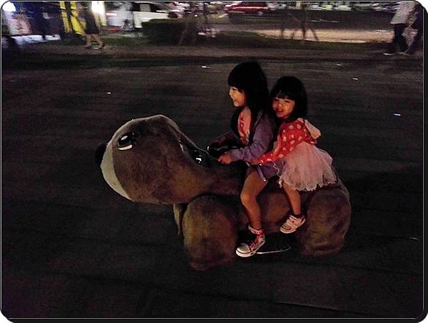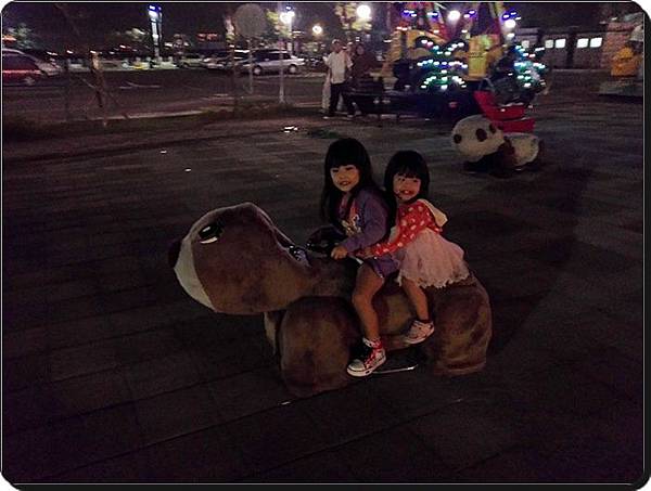 我看這麼晚還在外面玩搖搖的小朋友就屬你們姐妹倆了 (‧Q‧)