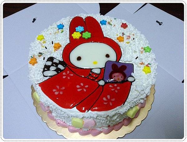 她最近很喜歡兔子的東西,所以蛋糕也是挑有兔子的圖案 ( ̄ˇ ̄)