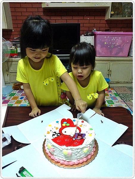 唱完生日快樂歌,就是紜姐姐很期待的切蛋糕的時刻囉 (〃∀〃)~♡