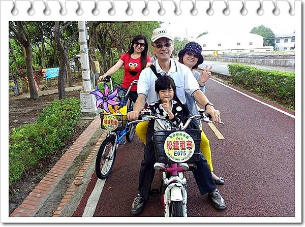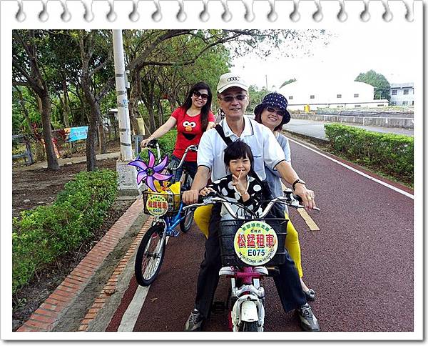 後來我們想想,下次再去騎腳踏車,我們家一定要有一個人租電動的