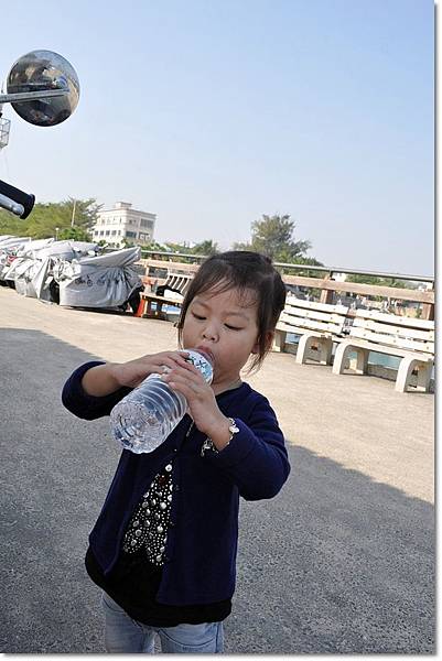 小玩一下後就趕她們上岸了,上岸後立即補充水分先 ◑ω◐