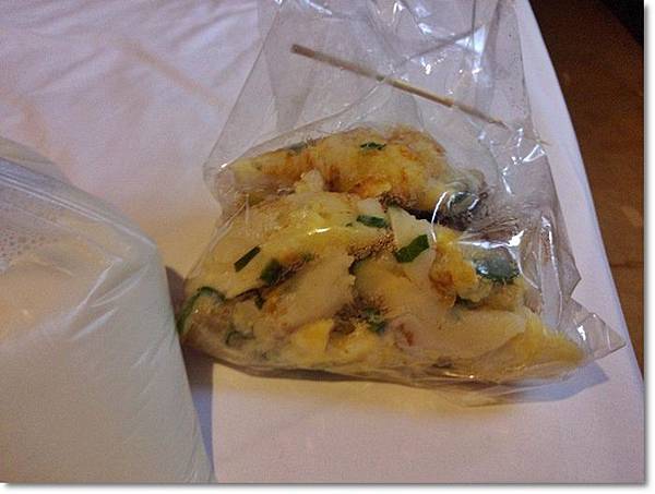 買了這樣一個蛋餅+一大袋的溫豆漿只要$20元內,好便宜呀 ~( ̄▽ ̄)~*