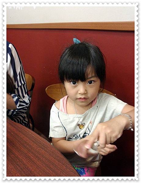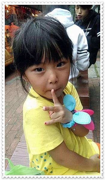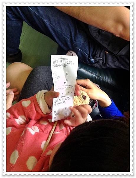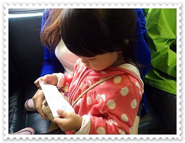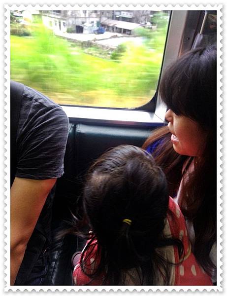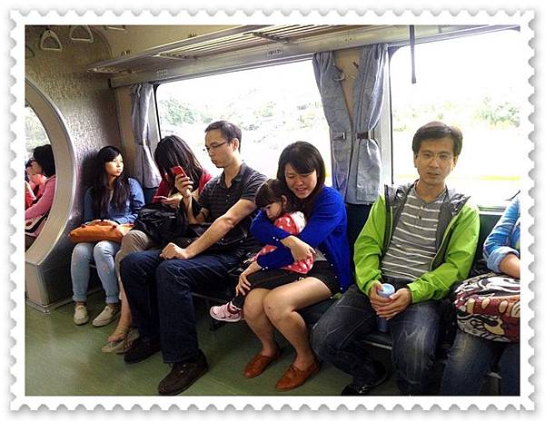 車廂內滿多人滴,所以妞妞也表現出有點怕生的樣子...