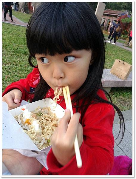 我們又有很多小朋友,所以決定外帶去對面的五妃廟內吃