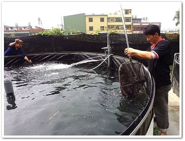 一旁有工作人員在撈魚,我們就湊熱鬧的過去瞧瞧( ̄﹏ ̄)